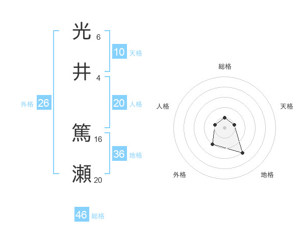 光井 篤瀬さんを姓名の画数から五運を鑑定