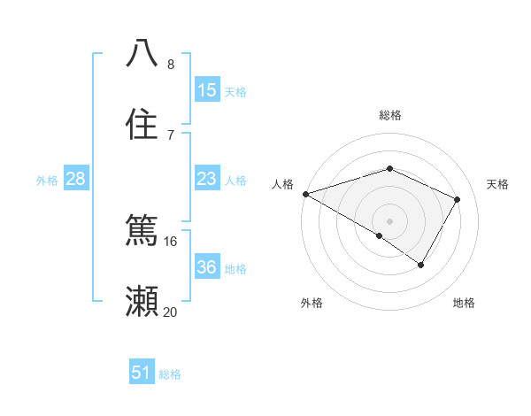八住 篤瀬さんの総格は51画の3点!