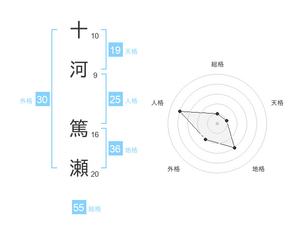 十河 篤瀬さんを姓名の画数から五運を鑑定