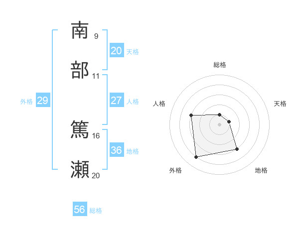 南部 篤瀬さんを姓名の画数から五運を鑑定