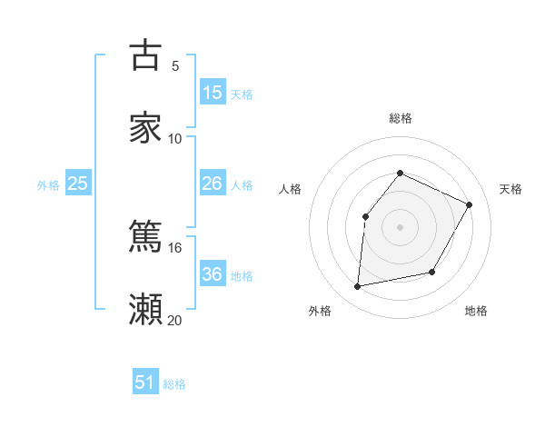 古家 篤瀬さんを姓名の画数から五運を鑑定