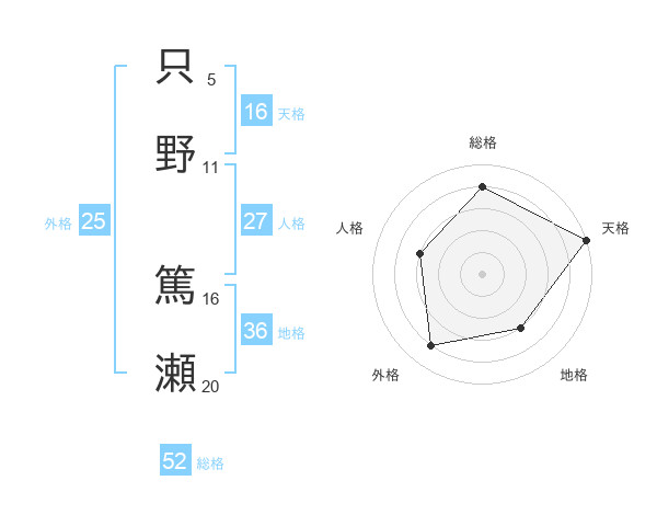 只野 篤瀬さんの総格は52画の4点!