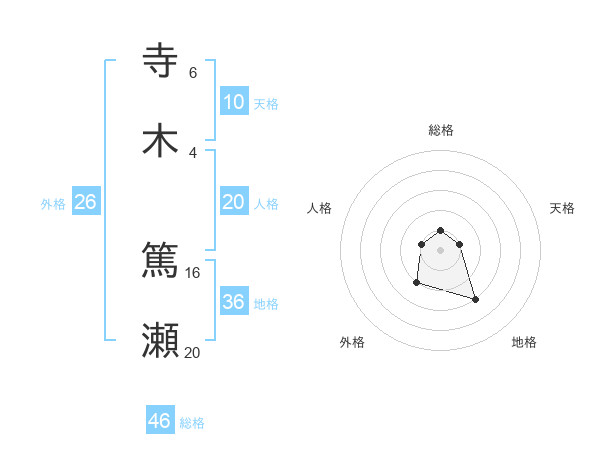 寺木 篤瀬さんの総格は46画の1点!