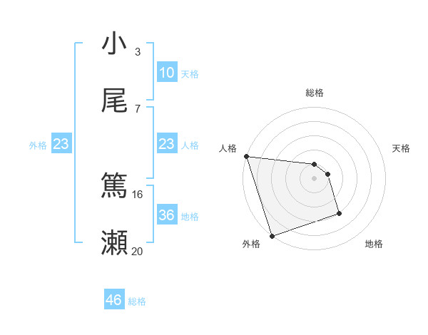 小尾 篤瀬さんの外格は23画の5点!