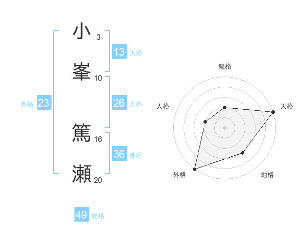 小峯 篤瀬さんの総格は49画の2点