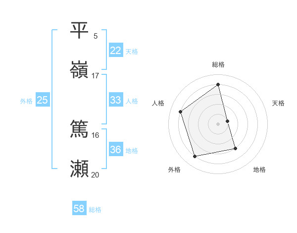 平嶺 篤瀬さんを姓名の画数から五運を鑑定