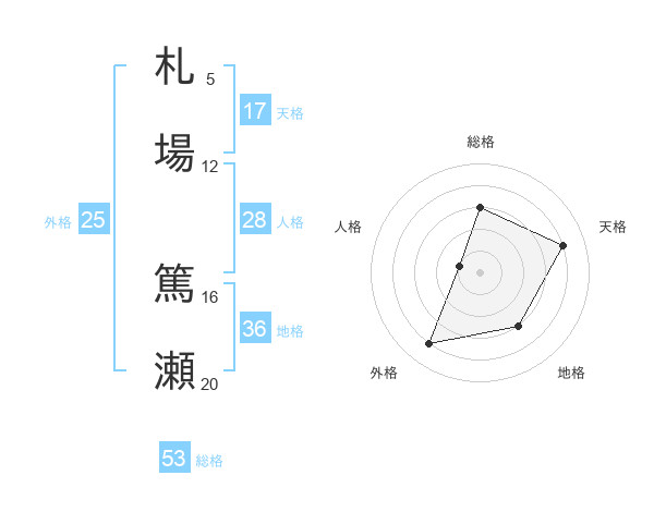 札場 篤瀬さんの総格は53画の3点!