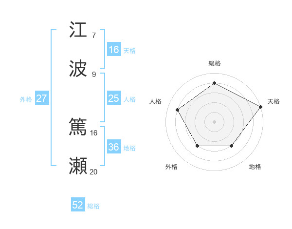 江波 篤瀬さんを姓名の画数から五運を鑑定