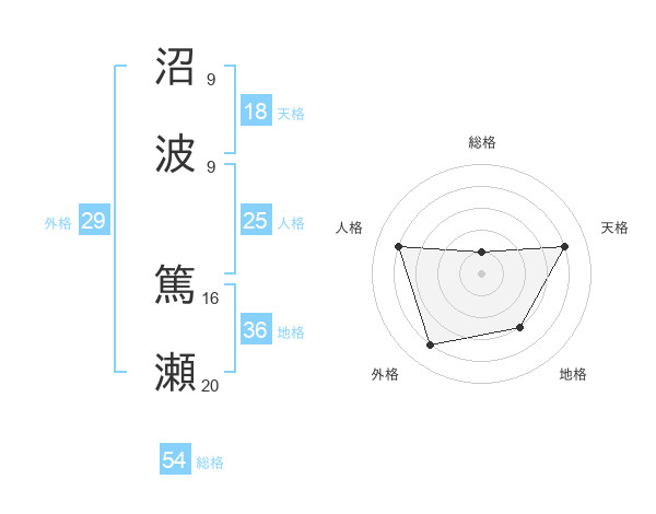 沼波 篤瀬さんを姓名の画数から五運を鑑定