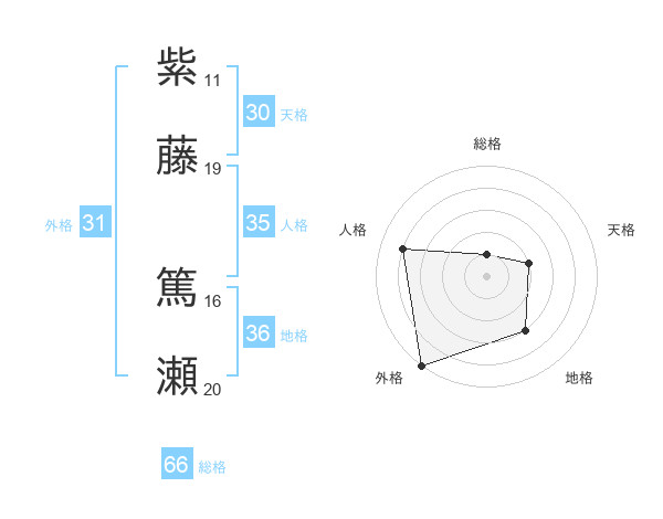 紫藤 篤瀬さんの総格は66画の1点!