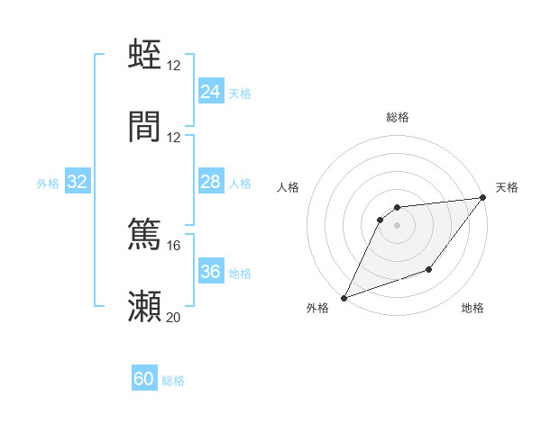 蛭間 篤瀬さんの総格は60画の1点!