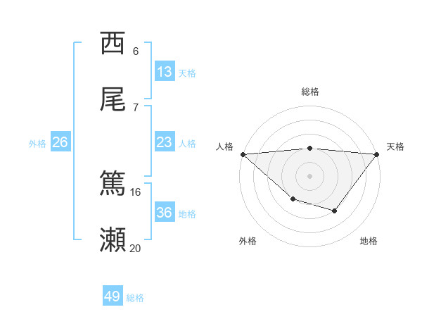 西尾 篤瀬さんを姓名の画数から五運を鑑定