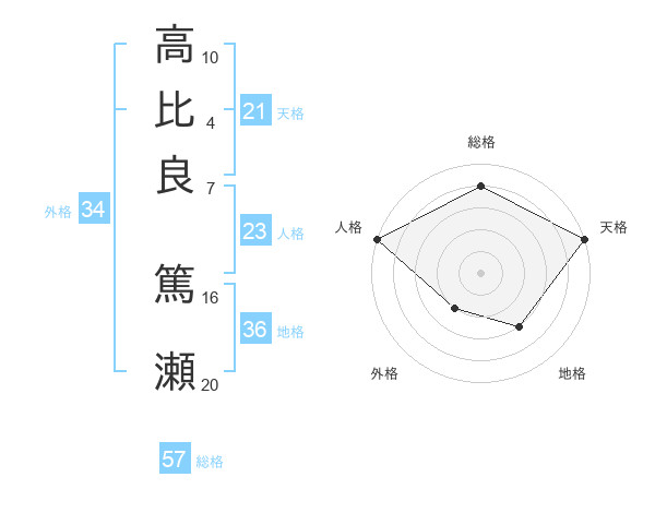 高比良 篤瀬さんの総格は57画の4点!