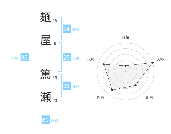 麺屋 篤瀬さんの総格は60画の1点!
