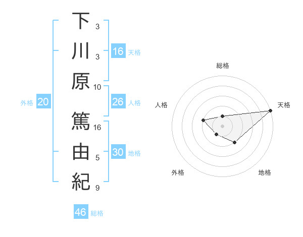 下川原 篤由紀さんを姓名の画数から五運を鑑定