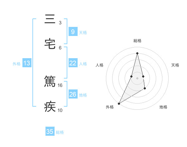 三宅 篤疾さんを姓名の画数から五運を鑑定