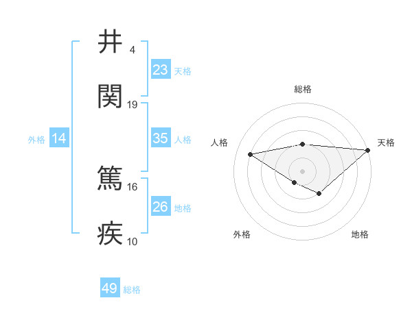 井関 篤疾さんを姓名の画数から五運を鑑定