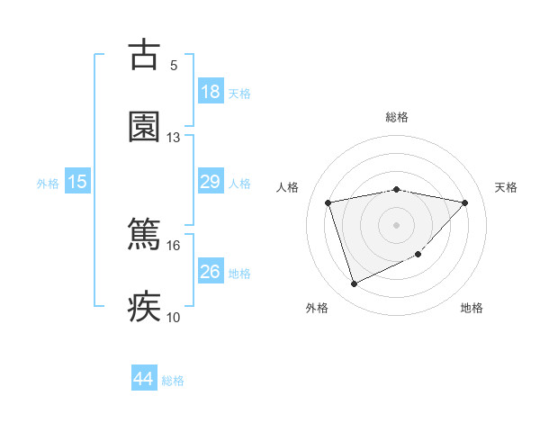 古園 篤疾さんの総格は44画の2点!
