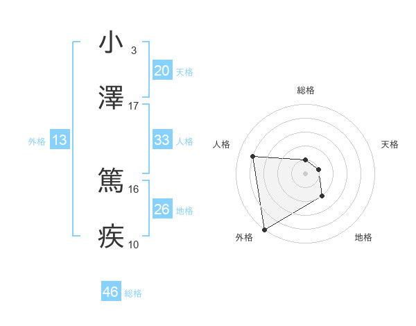 小澤 篤疾さんの外格は13画の5点!