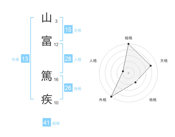 山富 篤疾さんを姓名の画数から五運を鑑定