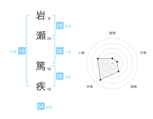 岩瀬 篤疾さんの総格は54画の1点!
