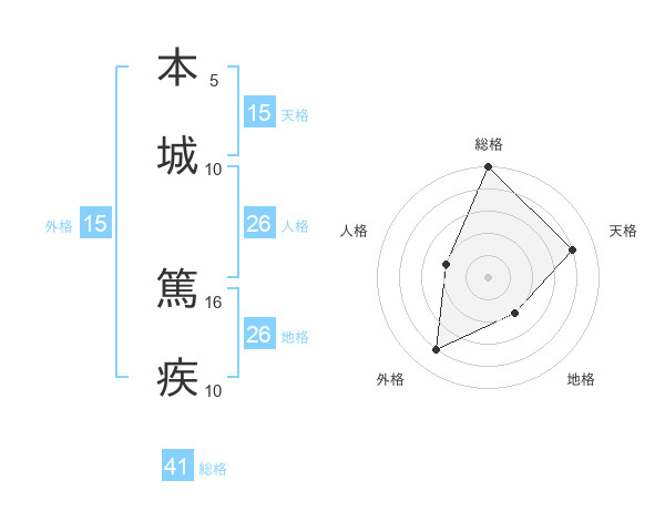 本城 篤疾さんの総格は41画の5点!