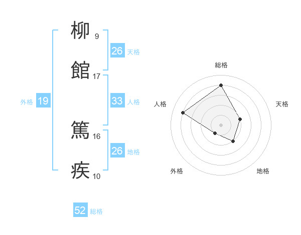 柳館 篤疾さんの総格は52画の4点!