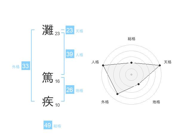 灘 篤疾さんの総格は49画の2点!