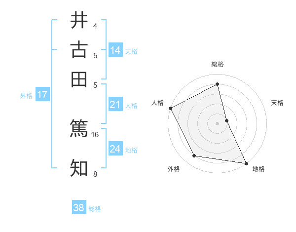 井古田 篤知さんの総格は38画の4点!