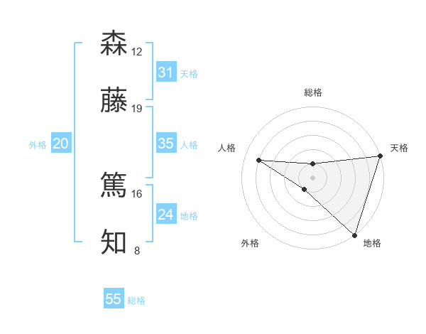 森藤 篤知さんの天格は31画の5点!