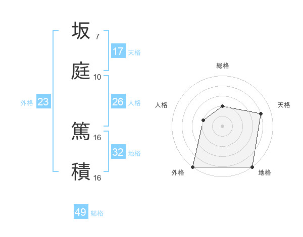 坂庭 篤積さんの総格は49画の2点!