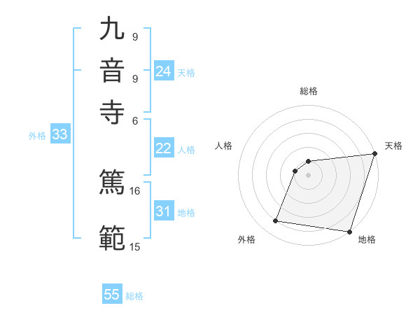 九音寺 篤範さんの総格は55画の1点!