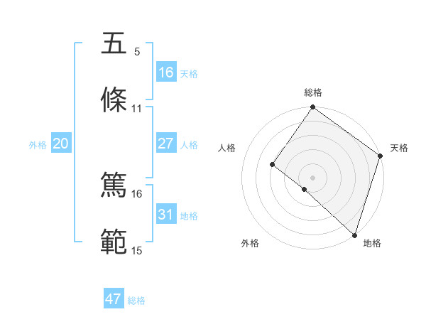 五條 篤範さんの総格は47画の5点!