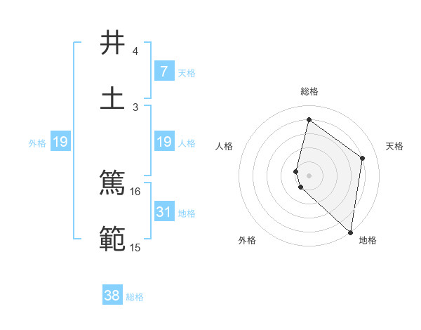 井土 篤範さんの総格は38画の4点!