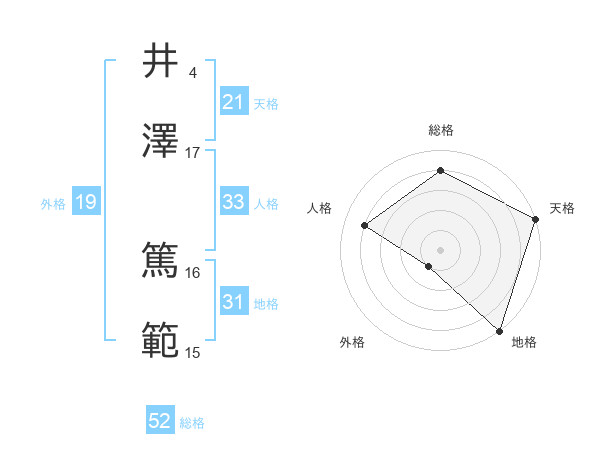 井澤 篤範さんの総格は52画の4点!