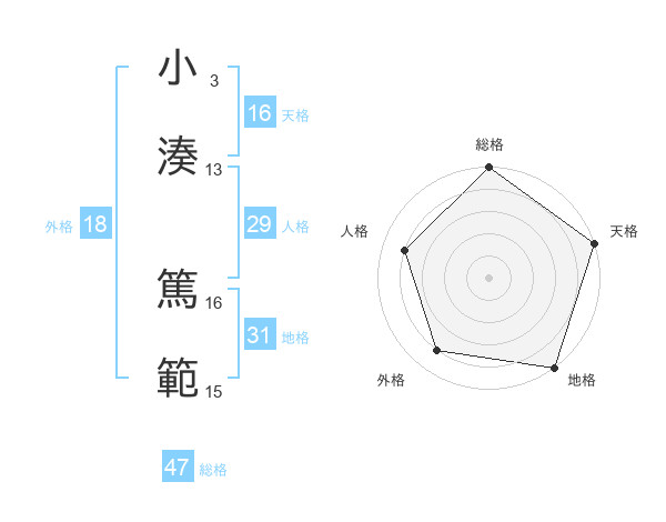 小湊 篤範さんを姓名の画数から五運を鑑定