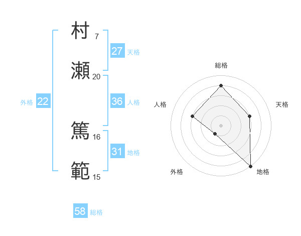 村瀬 篤範さんを姓名の画数から五運を鑑定