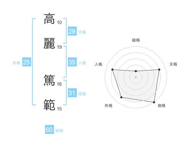 高麗 篤範さんの総格は60画の1点!