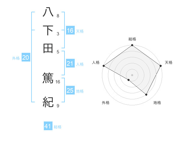 八下田 篤紀さんを姓名の画数から五運を鑑定