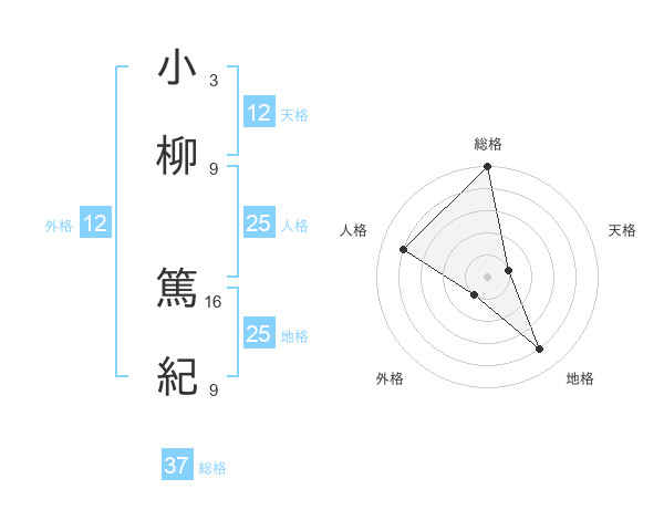 小柳 篤紀さんの天格は12画の1点!