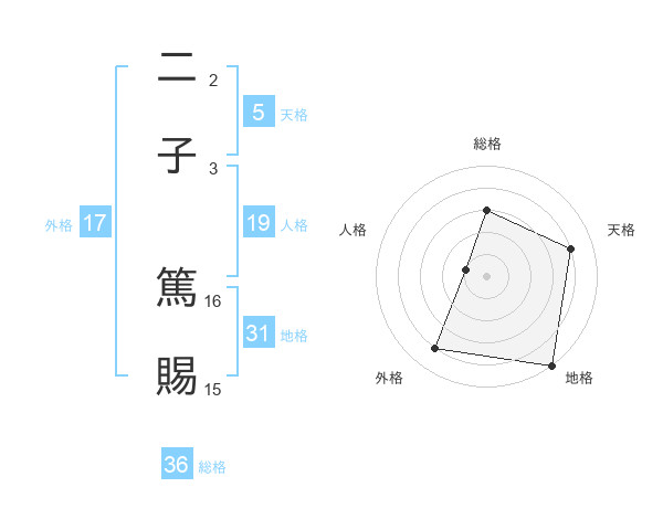 二子 篤賜さんの地格は31画の5点!