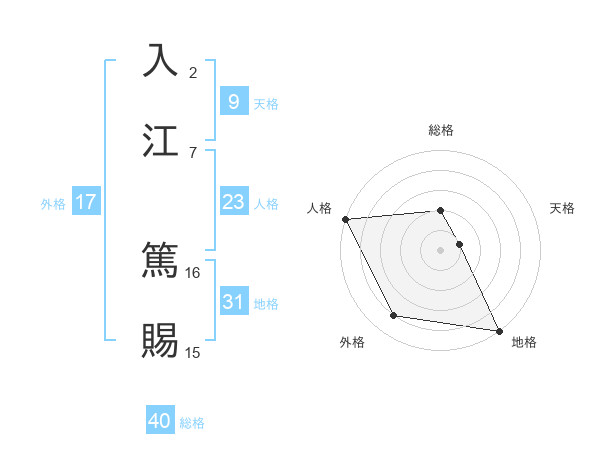 入江 篤賜さんを姓名の画数から五運を鑑定