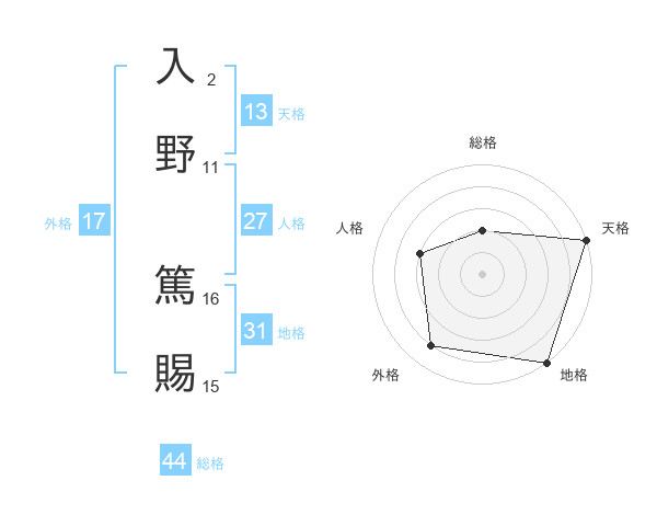 入野 篤賜さんを姓名の画数から五運を鑑定