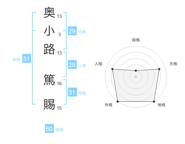奥小路 篤賜さんを姓名の画数から五運を鑑定