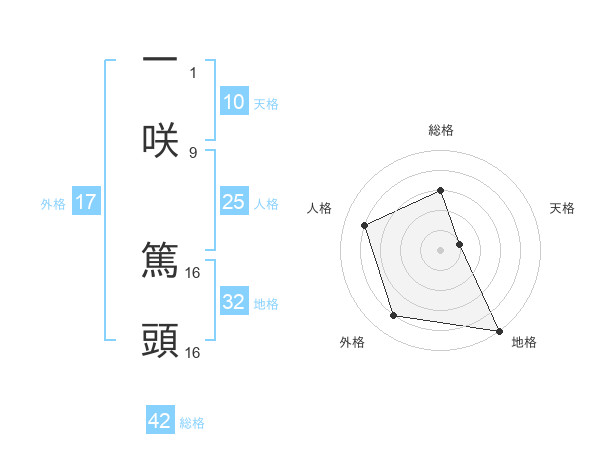 一咲 篤頭さんの地格は32画の5点!