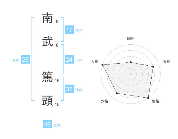 南武 篤頭さんの天格は17画の4点!