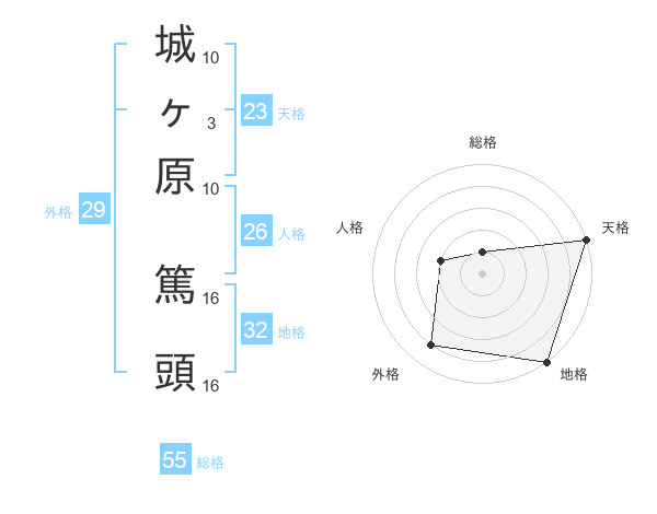 城ヶ原 篤頭さんの総格は55画の1点!