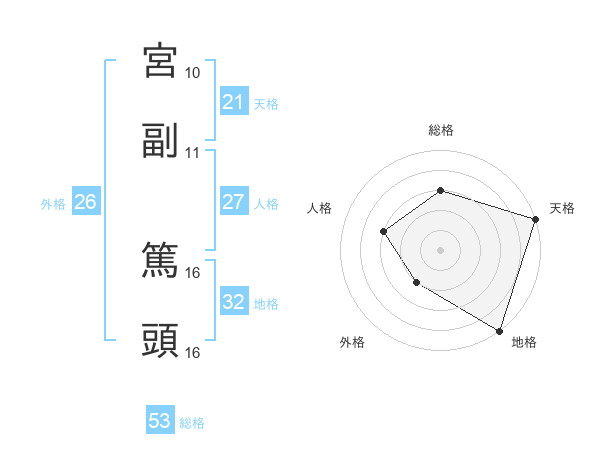 宮副 篤頭さんの総格は53画の3点!