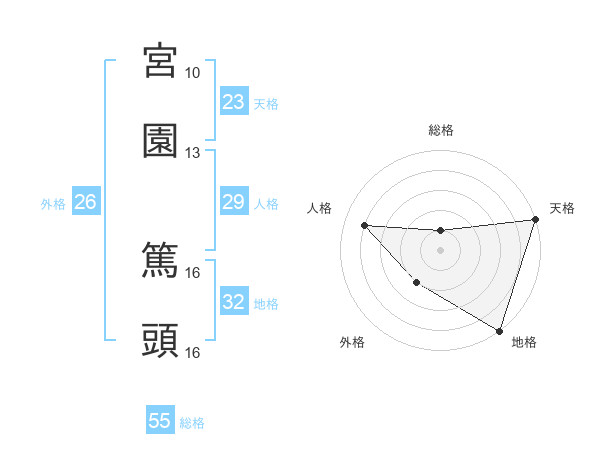 宮園 篤頭さんの総格は55画の1点!