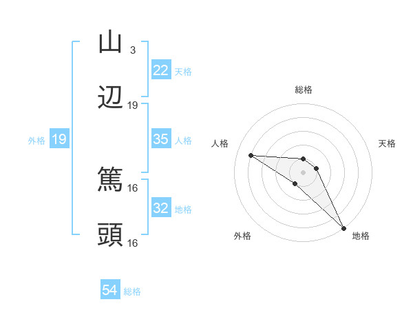 山辺 篤頭さんの総格は54画の1点!